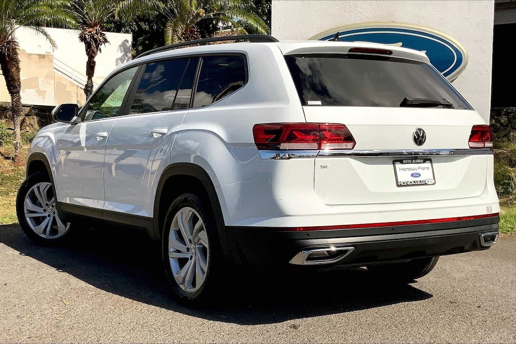 HONOLULU FORD! 808-532-1700, *DONT WAIT! CALL NOW!!, FINANCING AVAILABLE, GUARANTEED APPROVALS! LOW PAYMENTS! GREAT INTEREST RATES!, ***FORD CERTIFIED VEHICLE!! 172 POINT INSPECTION, OIL CHANGE, NEW WIPERS, NEW AIR FILTERS, FULL DET, WE SHIP TO NEIGHBOR ISLANDS!, 172 POINT INSPECTION BY FACTORY TRAINED TECHNICIANS!, STATE SAFETY INSPECTION COMPLETE!, APPLE CAR PLAY/ANDROID AUTO, BLUETOOTH HANDS FREE CALLING, ONE OWNER!!, ACCIDENT FREE CARFAX!, *LEATHER SEATS*, *HEATED SEATS, BACK-UP CAMERA, EXTRA CLEAN, DVD/REAR ENTERTAINMENT, WELL TAKEN CARE OF, PREMIUM WHEELS, EXCELLENT CONDITION!, EXCELLENT SERVICE HISTORY!!, BLIND SPOT MONITOR, READY FOR YOU TO DRIVE HOME TODAY!, ADAPTIVE CRUISE CONTROL, PARKING SENSORS, UPGRADED WHEELS, TOUCH SCREEN, 3.60 Axle Ratio, 3rd row seats: split-bench, 4-Wheel Disc Brakes, 6 Speakers, ABS brakes, Air Conditioning, Alloy wheels, AM/FM radio: SiriusXM with 360L, Auto-dimming Rear-View mirror, Automatic temperature control, Brake assist, Bumpers: body-color, Compass, Delay-off headlights, Driver door bin, Driver vanity mirror, Dual front impact airbags, Dual front side impact airbags, Electronic Stability Control, Emergency communication system: VW Car-Net Safe & Secure 5-year, Exterior Parking Camera Rear, Four wheel independent suspension, Front anti-roll bar, Front Bucket Seats, Front Center Armrest, Front dual zone A/C, Front fog lights, Front reading lights, Fully automatic headlights, Heated Comfort Front Bucket Seats, Heated door mirrors, Heated front seats, Illuminated entry, Leather Shift Knob, Low tire pressure warning, Occupant sensing airbag, Outside temperature display, Overhead airbag, Overhead console, Panic alarm, Passenger door bin, Passenger vanity mirror, Perforated V-Tex Leatherette Seating Surfaces, Power door mirrors, Power driver seat, Power Liftgate, Power steering, Power windows, Radio data system, Radio: MIB3 Composition Media w/8 Touchscreen, Rain sensing wipers, Rear air conditioning, Rear anti-roll bar, Rear reading lights, Rear seat center armrest, Rear window defroster, Rear window wiper, Remote keyless entry, Security system, Speed control, Speed-sensing steering, Split folding rear seat, Spoiler, Standard Suspension, Steering wheel mounted audio controls, Tachometer, Telescoping steering wheel, Tilt steering wheel, Traction control, Trip computer, Turn signal indicator mirrors, Variably intermittent wipers, Wheels: 20 x 8J 5-Spoke Silver Painted Alloy. CARFAX One-Owner. Clean CARFAX. Pure White 2023 Volkswagen Atlas 2.0T SE w/Technology FWD 8-Speed Automatic with Tiptronic 2.0L TSI