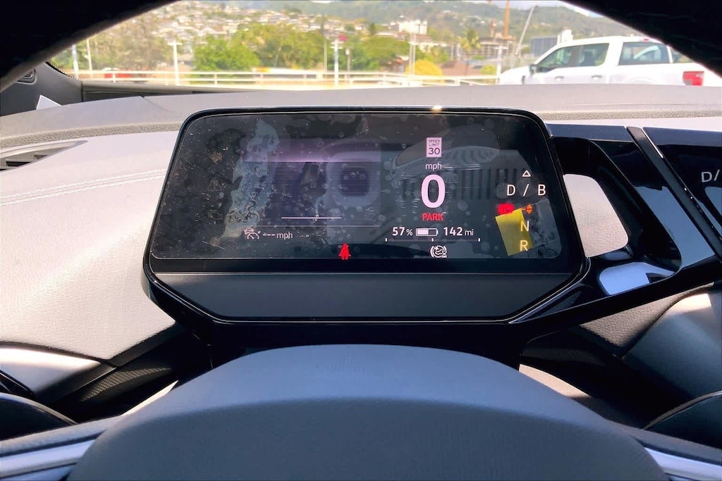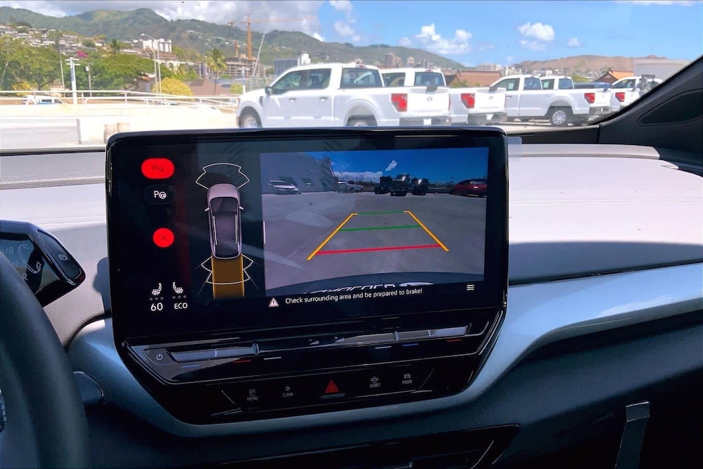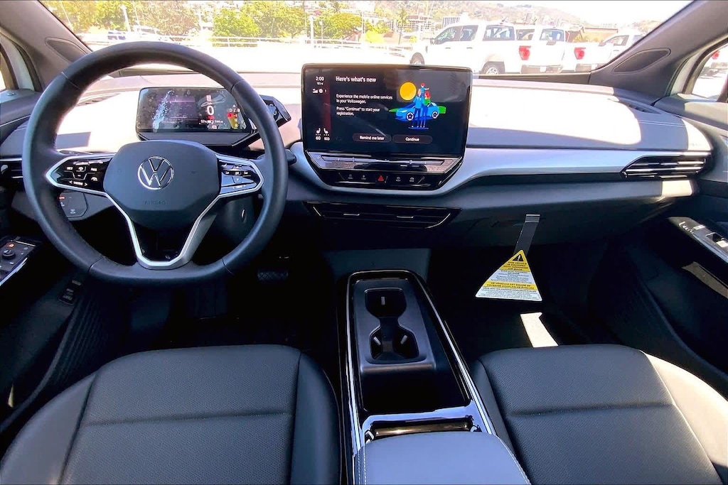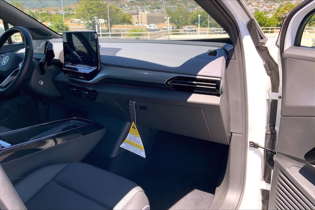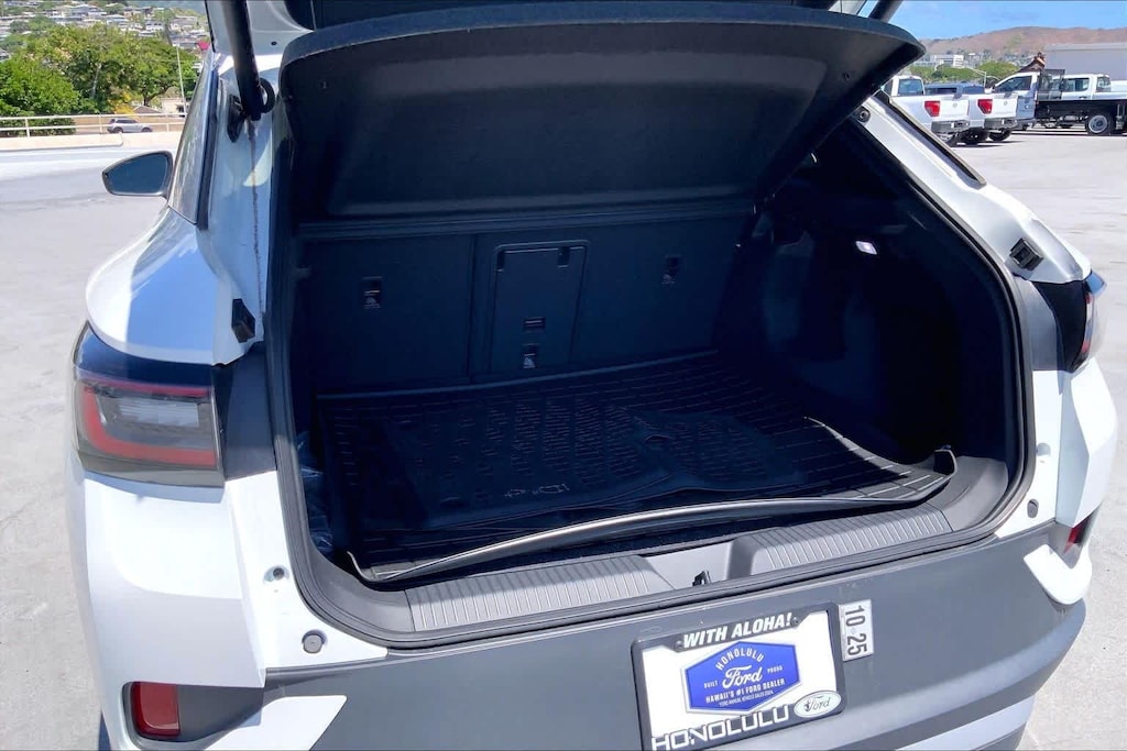 HONOLULU FORD! 808-532-1700, *DONT WAIT! CALL NOW!!, FINANCING AVAILABLE, GUARANTEED APPROVALS! LOW PAYMENTS! GREAT INTEREST RATES!, 3.90 Axle Ratio, 4 Wheel Independent Suspension, 7 Speakers, ABS brakes, Air Conditioning, Alloy wheels, Auto High-beam Headlights, Auto-dimming Rear-View mirror, Automatic temperature control, Brake assist, Bumpers: body-color, Delay-off headlights, Driver door bin, Driver vanity mirror, Drivers Seat Mounted Armrest, Dual front impact airbags, Dual front side impact airbags, Electronic Stability Control, Emergency communication system: VW Car-Net Safe & Secure 5-year, Exterior Parking Camera Rear, Four wheel independent suspension, Front anti-roll bar, Front Bucket Seats, Front dual zone A/C, Front fog lights, Front reading lights, Fully automatic headlights, Heated door mirrors, Heated Front Seats, Heated front seats, Heated rear seats, Heated steering wheel, Illuminated entry, Low tire pressure warning, Memory seat, Navigation System, Occupant sensing airbag, Outside temperature display, Overhead airbag, Overhead console, Panic alarm, Passenger door bin, Passenger seat mounted armrest, Passenger vanity mirror, Perforated V-Tex Leatherette Seating Surfaces, Power door mirrors, Power driver seat, Power Liftgate, Power passenger seat, Power steering, Power windows, Radio data system, Rain sensing wipers, Rear air conditioning, Rear anti-roll bar, Rear reading lights, Rear seat center armrest, Rear window defroster, Rear window wiper, Remote keyless entry, Speed control, Speed-sensing steering, Split folding rear seat, Spoiler, Steering wheel mounted audio controls, Telescoping steering wheel, Tilt steering wheel, Traction control, Trip computer, Turn signal indicator mirrors, Variably intermittent wipers, Wheels: 20 Dynamic Design 2-Tone Machined Alloy, 4-Wheel Drive/All-Wheel Drive. Recent Arrival! 2023 Volkswagen ID.4 Pro S Plus AWD Single-Speed Automatic Electric Motor